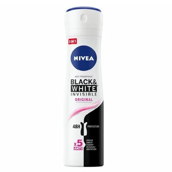اسپری بدن نیوا بلک اند وایت NIVEA Black & White – محافظت ۴۸ ساعته بدون لک و خوشبوکننده حرفه‌ای
