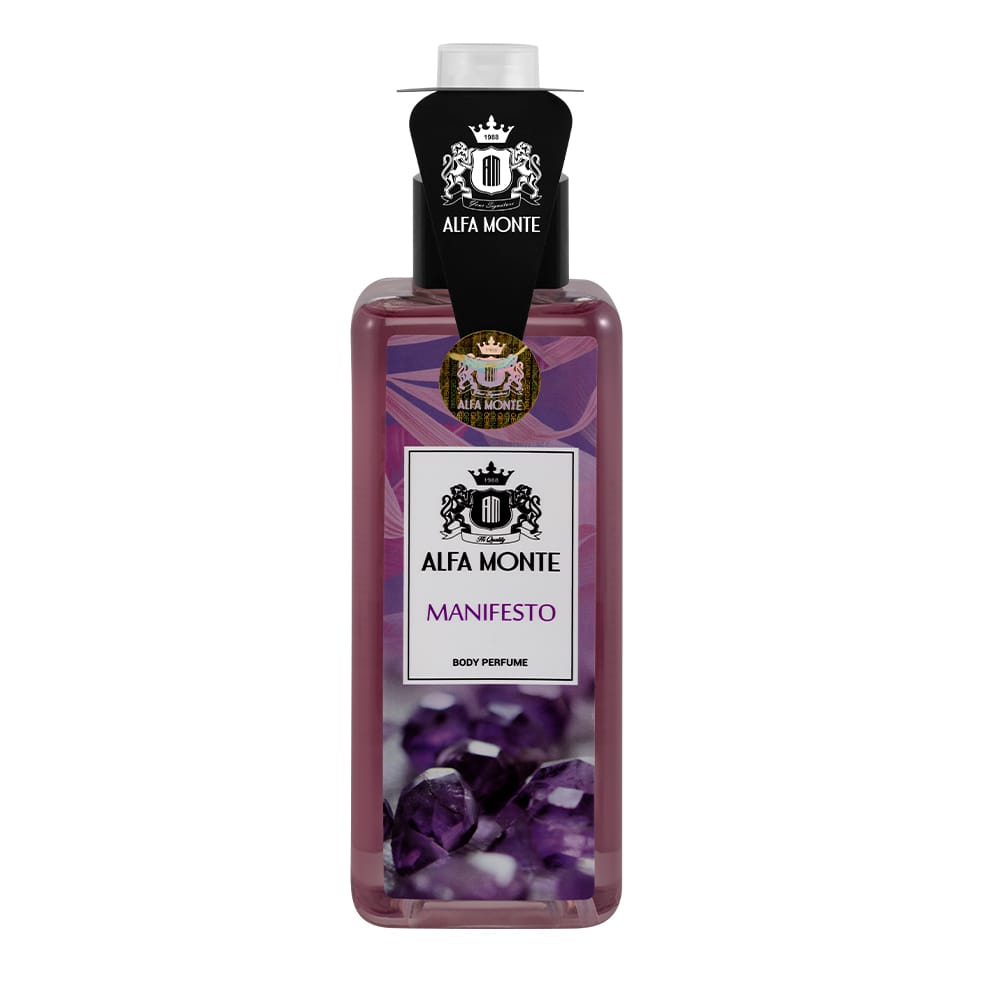مانیفستو عطری است که شعار آزادی و بیان شخصیت زنانه را به زیباترین شکل بازتاب می‌دهد. نسخه بادی اسپلش آلفامونته با رایحه‌ای متعادل، مناسب استفاده روزمره طراحی شده است: